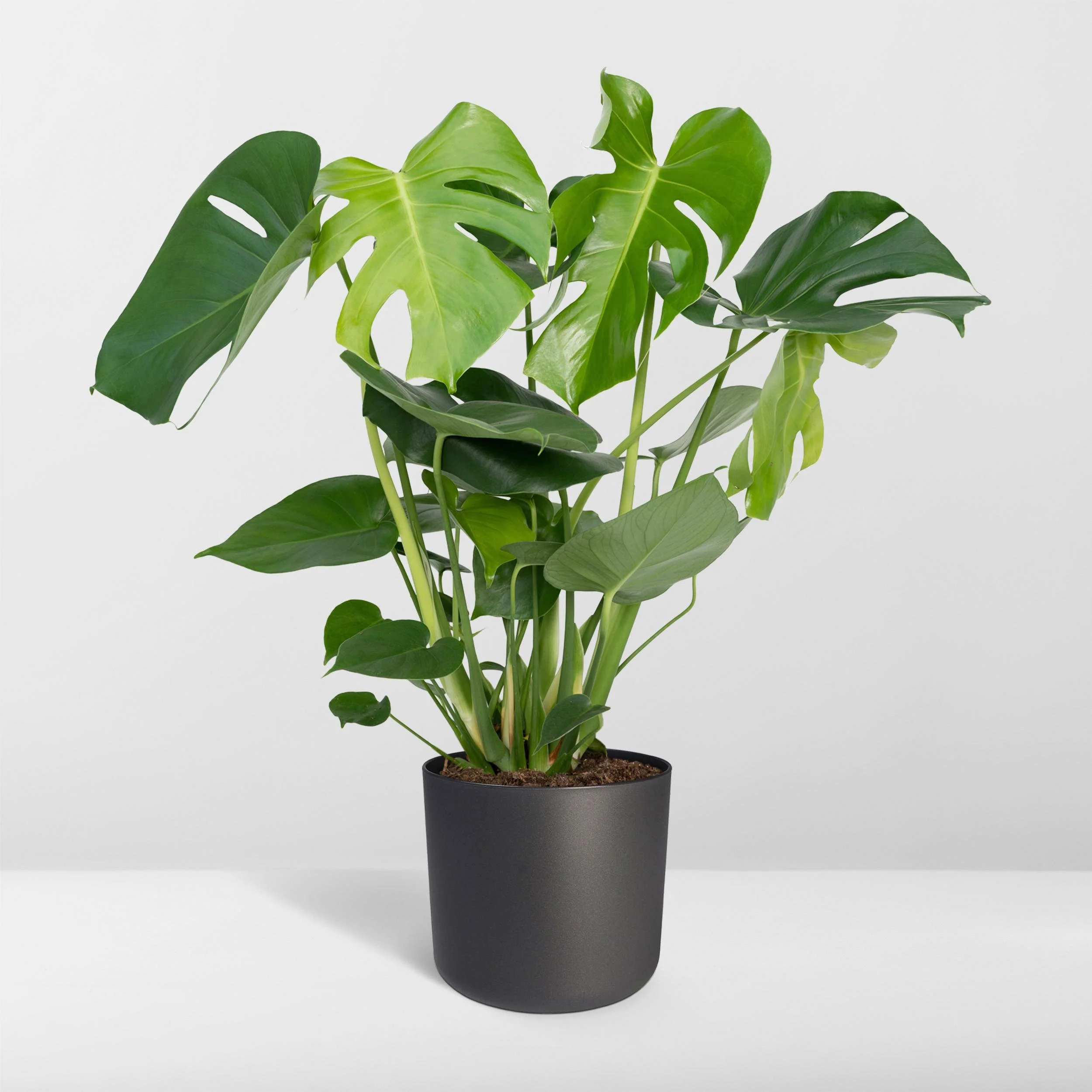Ein wahrer Klassiker für Anfänger! Monstera, auch bekannt als die Schweizer Käsepflanze, ist eine gewöhnliche Zimmerpflanze, die normalerweise auf Fensterbänken oder Schreibtischen steht. Aber wusstest du, dass Monstera in der Natur bis zu 9 Meter hoch wachsen können? In Innenräumen sind sie etwas zurückhaltender, können aber immer noch bis zu 4,5 Meter hoch und 2,5 Meter breit werden. Wie viele andere Pflanzen auch, mögen Monstera helles, indirektes Licht und eine gute Luftfeuchtigkeit. Monstera machen sich in jeder Inneneinrichtung gut, und eine besonders große Monstera kann einen gesamten Raum mit ihrer Ausstrahlung erfüllen.