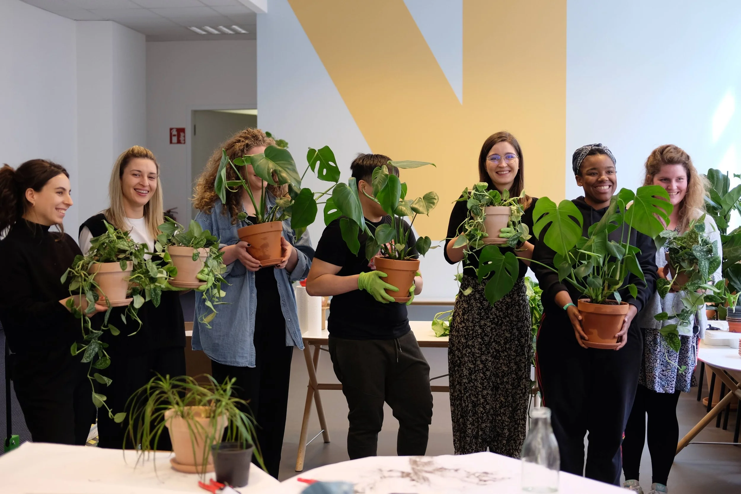 In unserem allerersten Workshop kehrte Plantclub zu seinen Wurzeln zurück und brachte N26-Teilnehmer an einem seiner Berliner Standorte zu einem unterhaltsamen und informativ praktischen Workshop zusammen - gerade rechtzeitig zum Frühling. Die Vermehrung von Zimmerpflanzen und das Umtopfen, wichtige Aufgaben für jeden Pflanzenliebhaber, können herausfordernd sein, wenn man sich mit einem frisch ergrünten Daumen diesen Aufgaben stellt. Aber mit ein wenig Anleitung waren die N26-Mitarbeiter begeistert, den Dschungel zu erobern.